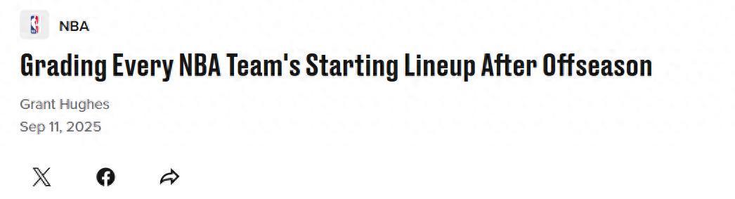 火箭队全新五虎获A评分!在距离新赛季训练营不足三周之际,美媒《bleacherreport》也为即将到来的新赛季预热,公布出新赛季30支球队首发阵容评分,其中勇士队获A-,湖人队仅获B。