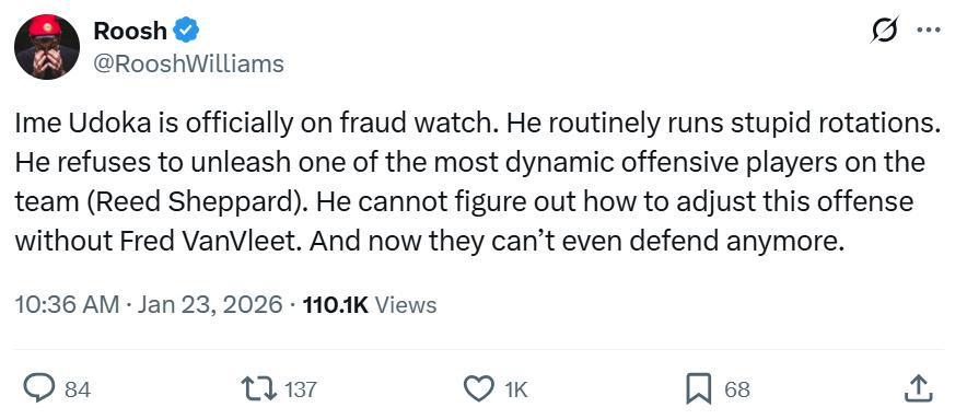 火箭媒体人Will更是发文直接点名乌度卡,表示自己真得需要乌度卡解释一下,为什么谢泼德登场机会这么少,而且每一次都是在其状态火热时发生,火箭队本赛季差不多有8-10场被逆转的比赛是从谢泼德使用出问题开始的。