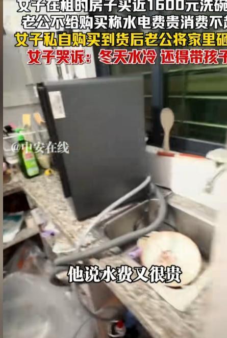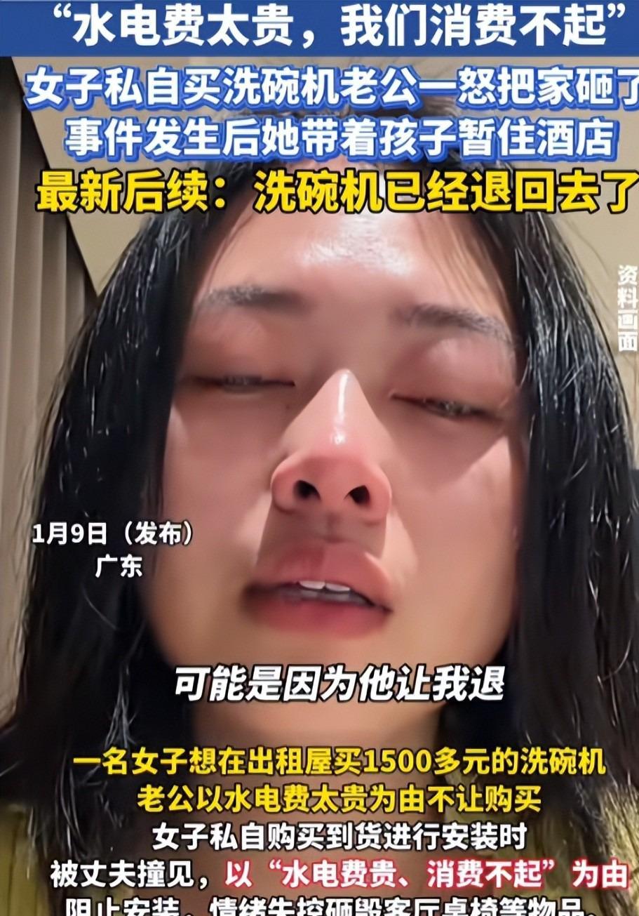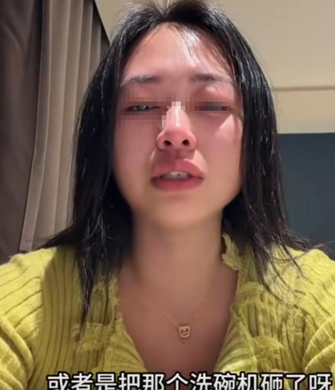 女子哭诉因为买一台1500元洗碗机老公把家砸了,看起来让人心疼不已。